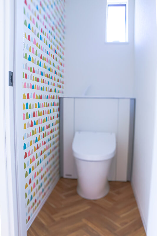 おトイレに行くのも楽しくしてくれそうなカラフルな壁紙。